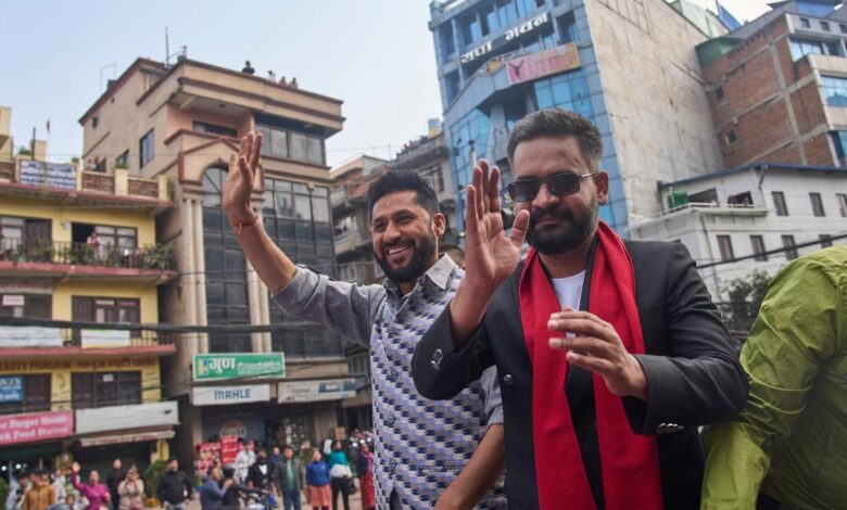 尼泊尔人民党 (RSP) 领导人拉比·拉米查尼 (Rabi Lamichane) 和巴伦德拉·沙阿 (Balendra Shah)。文件 |照片来源:美联社