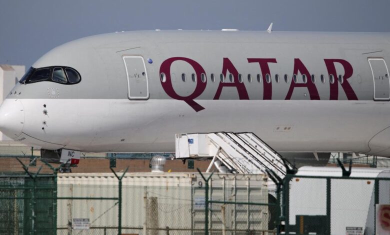 卡塔尔航空周一(2026 年 3 月 9 日)运营多哈飞往新德里的航班,载有 300 多名滞留在多哈的印度人前往印度。文件 |图片来源:路透社